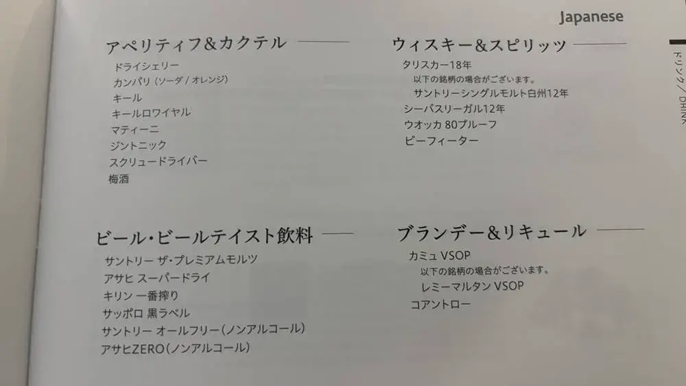 ANAビジネスクラス|ドリンクメニュー