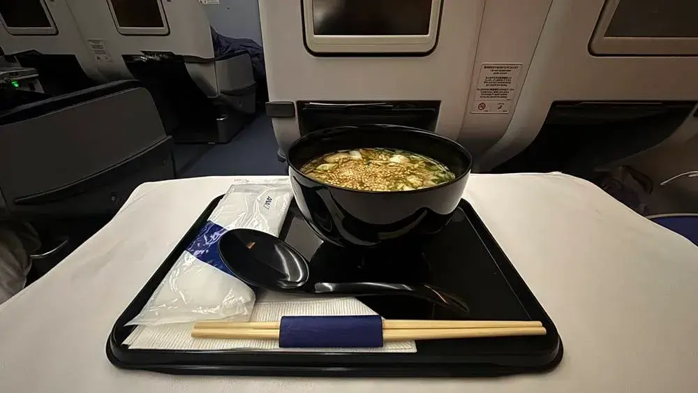まず、熱々のお味噌汁にほっこり。日本の航空機はやっぱりいいですよね。